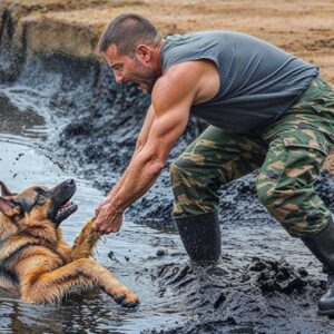 Explosive Rescue – ein winziger Welpe kämpft verzweifelt in einer Ölpfütze ums Atmen, hebt tapfer den Kopf, sinkt aber immer weiter – wer…
